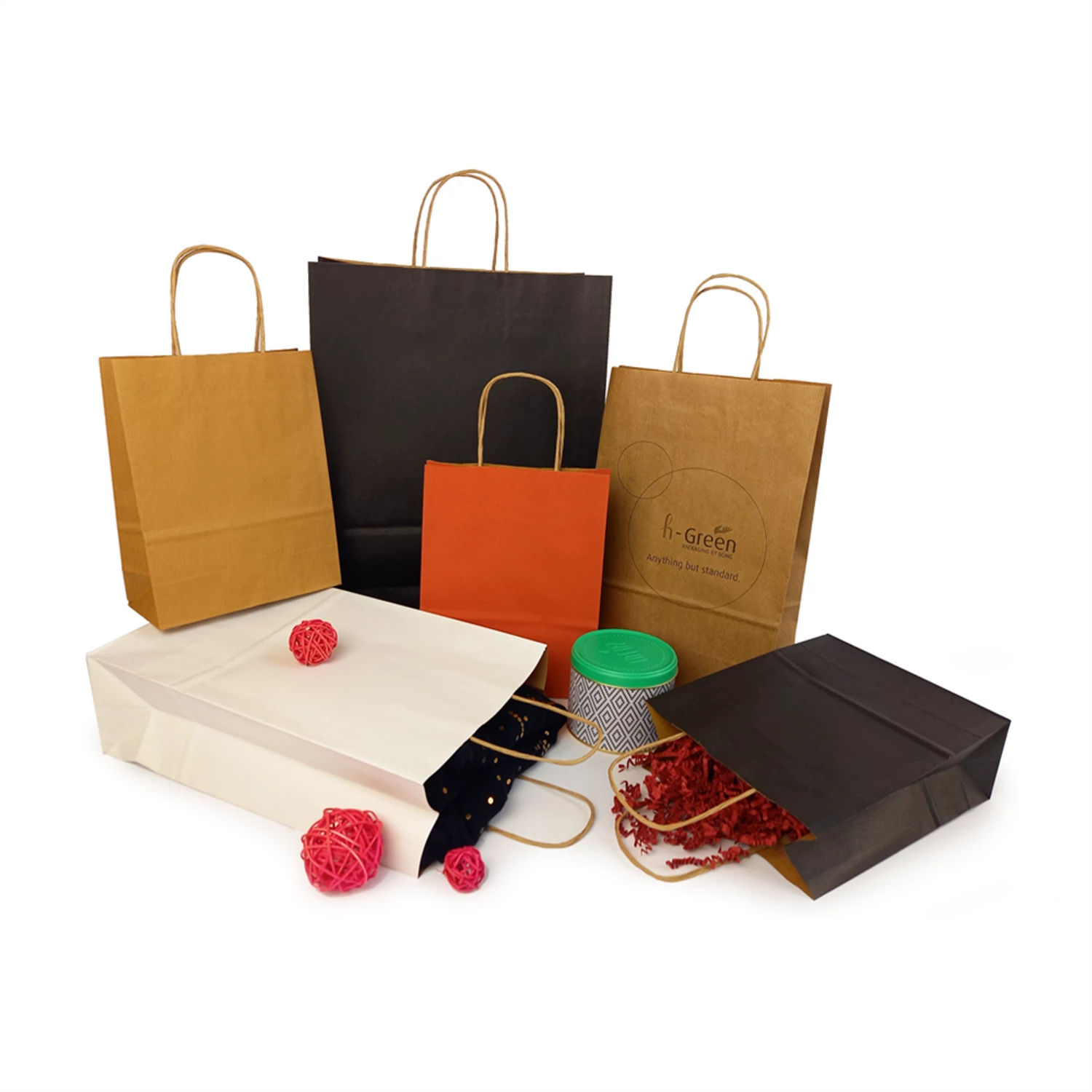 Válassza a fenntarthatóságot kiskereskedelmi üzlete számára! h-Green egy 100%-ban újrahasznosítható papírtáska termékcsalád, újrahasznosított papírból! h-Green a fenntartható termék! h-Green úgy lett kialakítva, hogy a termék életciklusának minden szakaszában korlátozza a környezetre gyakorolt hatását. Újrahasznosított nátronpapírból készül, FSC® tanúsítvánnyal rendelkezik, ellenálló és 100%-ban újrahasznosítható. A felhasznált tinták vízbázisúak és természetes pigmentekkel készülnek, ásványi olajok nélkül. A ragasztók nem tartalmaznak veszélyes vegyi anyagokat az újrahasznosítás megkönnyítése érdekében. Kifejezetten a kiskereskedelmi üzletek számára készült táska három méretben és négy színben kapható. S, M és L méret négy színben elérhető: fehér, piros, fekete és bordázott barna. Katalóguskód: 42251 Hiteles tájékoztatás: Elkötelezettek vagyunk termékeink biztonságának garantálásáért, nyomon követjük a termékbiztonsággal kapcsolatos valamennyi európai uniós és hazai szabályozást és biztosítjuk termékeink azoknak történő megfelelését. Az EU 2023/988-as számú Általános Termékbiztonsági Rendeletét (GPSR) is alkalmazzuk, így ha a termékeink biztonságát illetően fogyasztóként kérdése, észrevétele van, vagy esetleg balesetről van tudomása, kérjük, írja meg nekünk.
