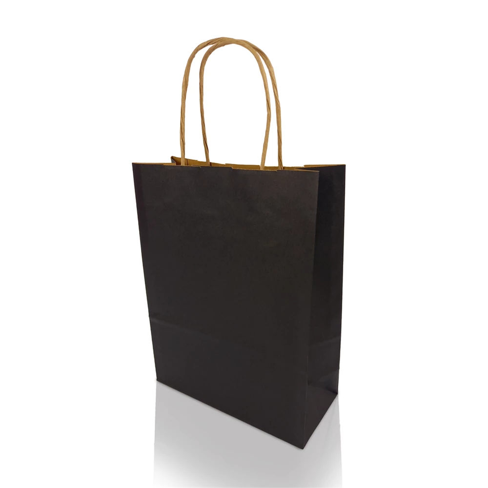 Sodrottfüles papírtáska 185x240mm 80mm talp S méret 250 db/doboz, fekete