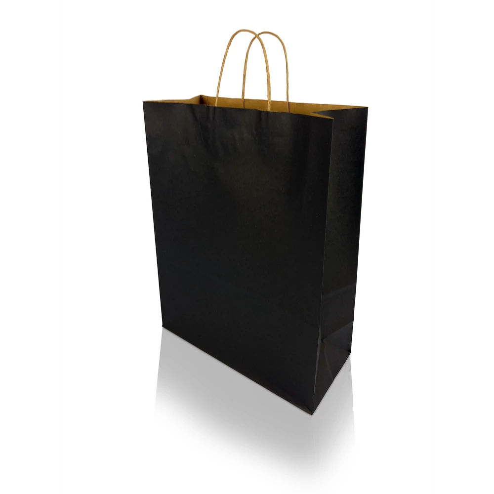 Sodrottfüles papírtáska 320x420mm 150mm talp L méret 200 db/doboz, fekete