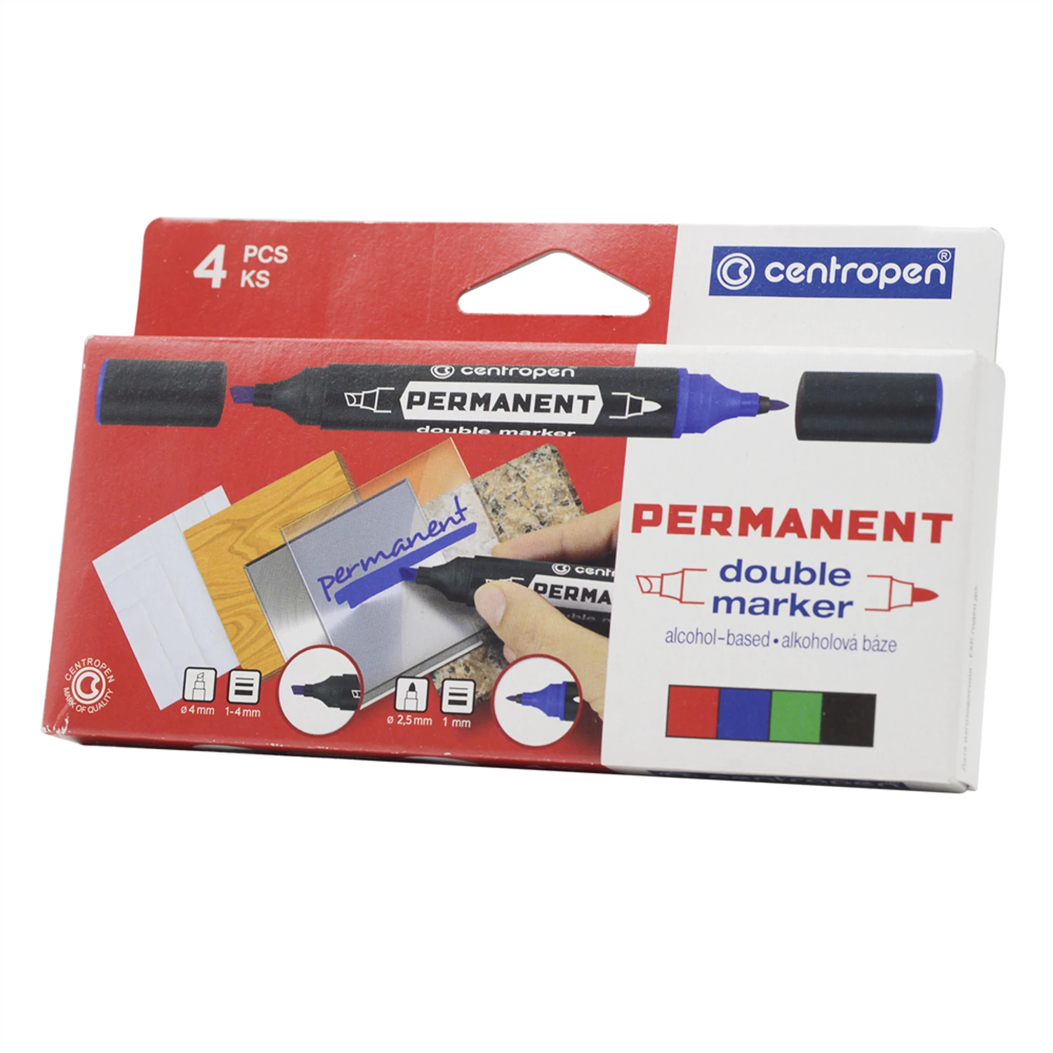 Alkoholos marker készlet, 1mm,/1-4mm, kéthegyű Centropen 1666, 4 klf. szín
