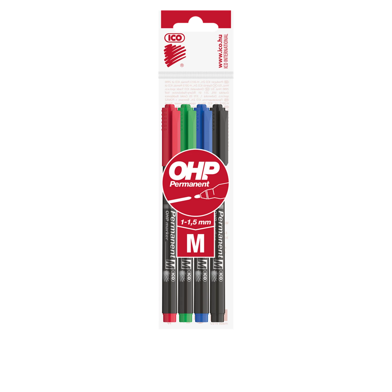 Alkoholos marker készlet, M, OHP Ico, 4 klf.szín