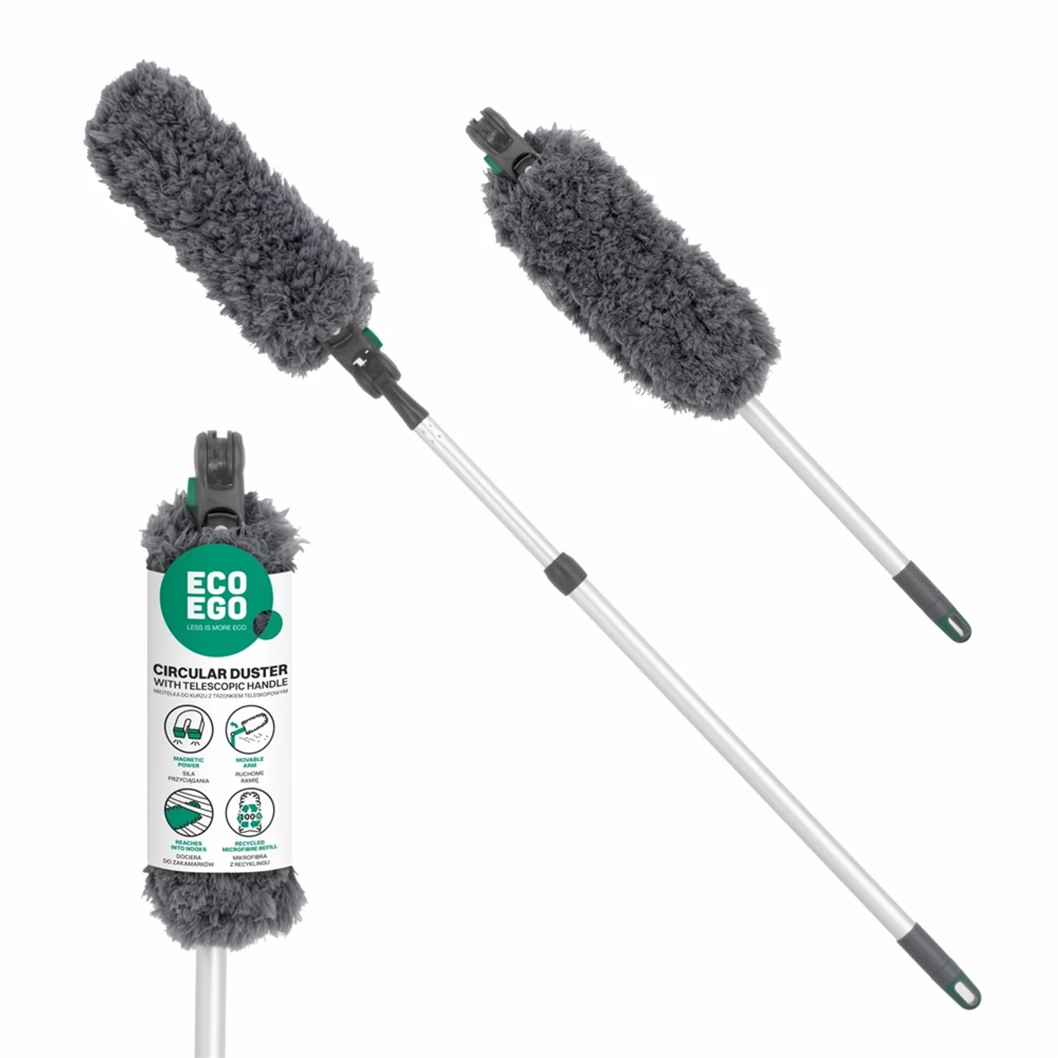 A Duster ECO EGO egy praktikus eszköz, amelynek a hegye bolyhos mikroszálas anyagból készül. Szárazon és nedvesen egyaránt jól működik, bútorok, falak, padlók, növényi levelek és üvegfelületek tisztítására is. A mikroszálas utántöltő kényelmesen mosható mosógépben is. mérete: 12 x 7 x 62 cm hossza: 135 cm színe: szürke Katalóguskód: 63321 Hiteles tájékoztatás: Elkötelezettek vagyunk termékeink biztonságának garantálásáért, nyomon követjük a termékbiztonsággal kapcsolatos valamennyi európai uniós és hazai szabályozást és biztosítjuk termékeink azoknak történő megfelelését. Az EU 2023/988-as számú Általános Termékbiztonsági Rendeletét (GPSR) is alkalmazzuk, így ha a termékeink biztonságát illetően fogyasztóként kérdése, észrevétele van, vagy esetleg balesetről van tudomása, kérjük, írja meg nekünk.