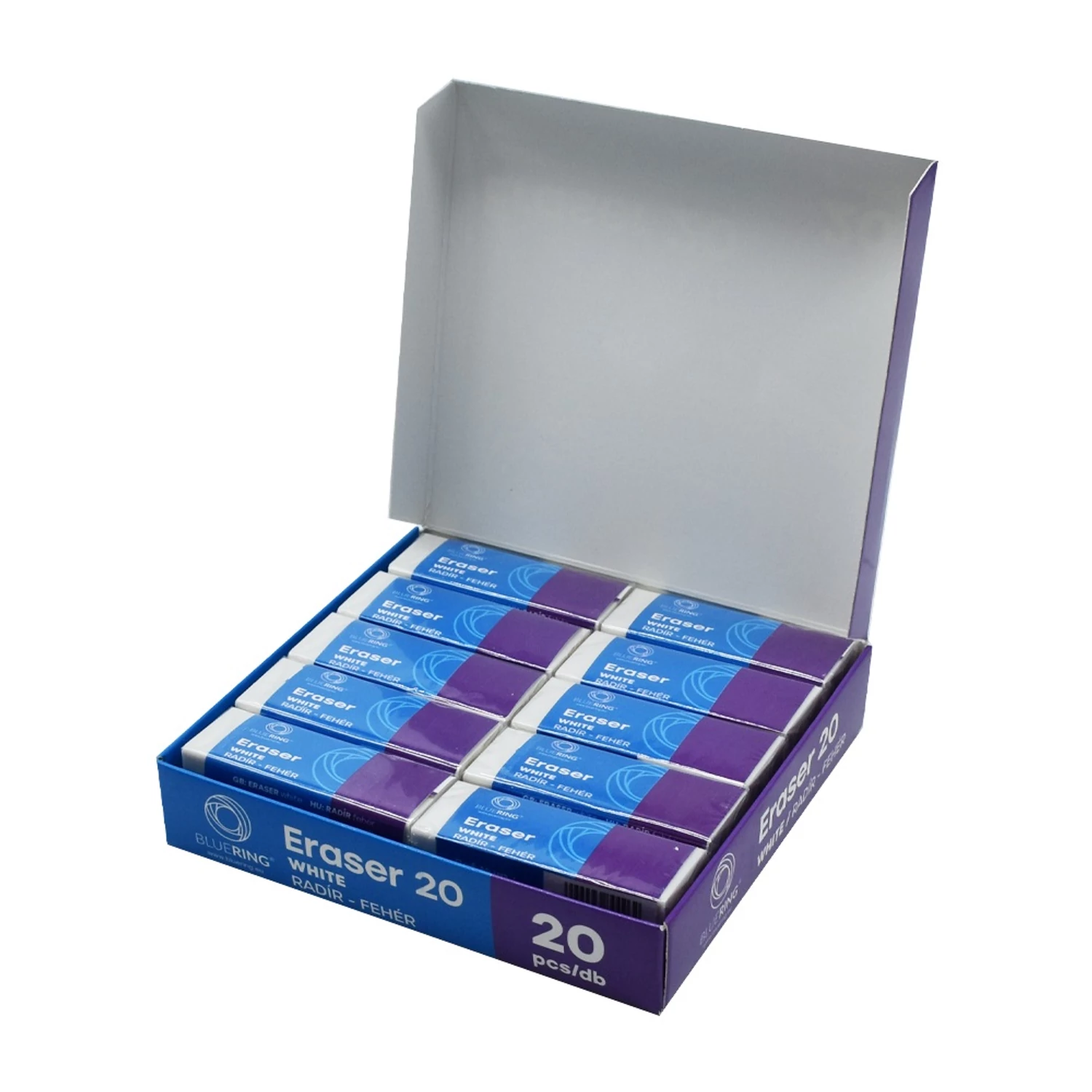 Radír 20-as fehér szögletes papír tokban Bluering®
