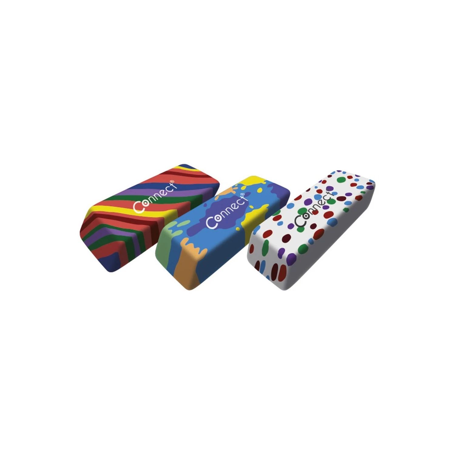A Connect radírok mintázatai játékosságot visznek a gyakran monoton feladatokba: a színes, kedves, változatos grafikák a gyerekek kedvenceivé válnak, de a felnőttek számára is kellemes kiegészítői a munkának. A radírok puha, de nem morzsálódó anyagból készülnek, így kímélik a papírt, miközben hatékonyan eltávolítják a ceruza- és grafitnyomokat. A radírozás élménnyé válik, nem pedig kínlódássá.