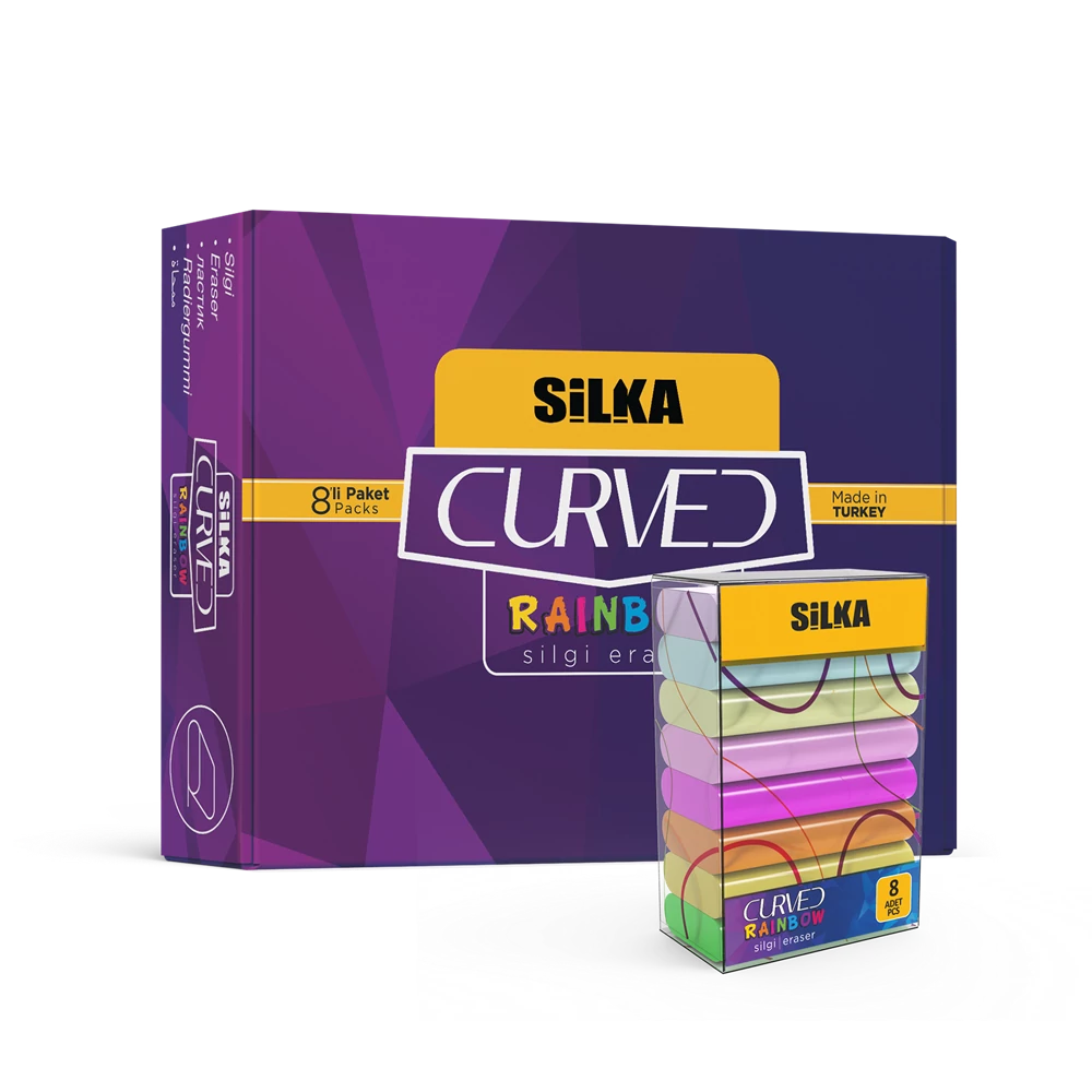 Radír, kerekített szélű, 8 db-os készletben, pasztell színekben, 30 klt/display Silka