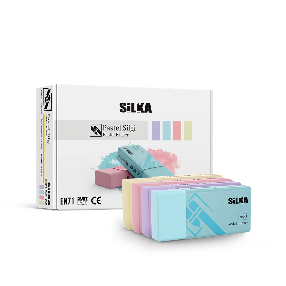 Pasztell színű radír papír tokban. Hőre lágyuló gumiból készült, PVC és forgácsmentes. Élelmiszer minőségű festékanyagokkal gyártva. Ideális grafitceruza vonalak radírozásához. Radír mérete: 44x22x13,5 mm, 24 db/display Katalóguskód: 55690