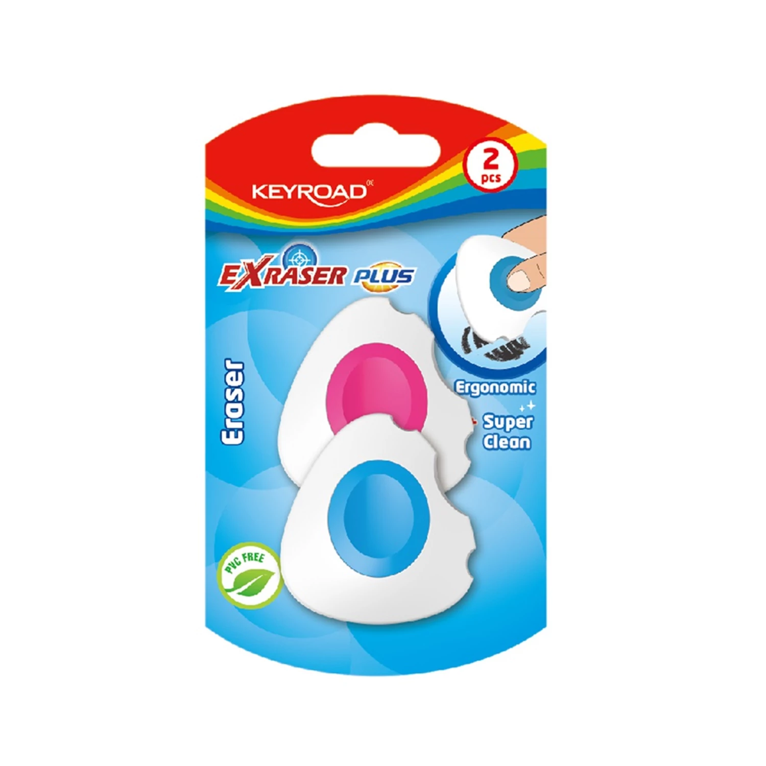 Radír, PVC mentes 2 db/bliszter Keyroad Exraser Plus vegyes színek