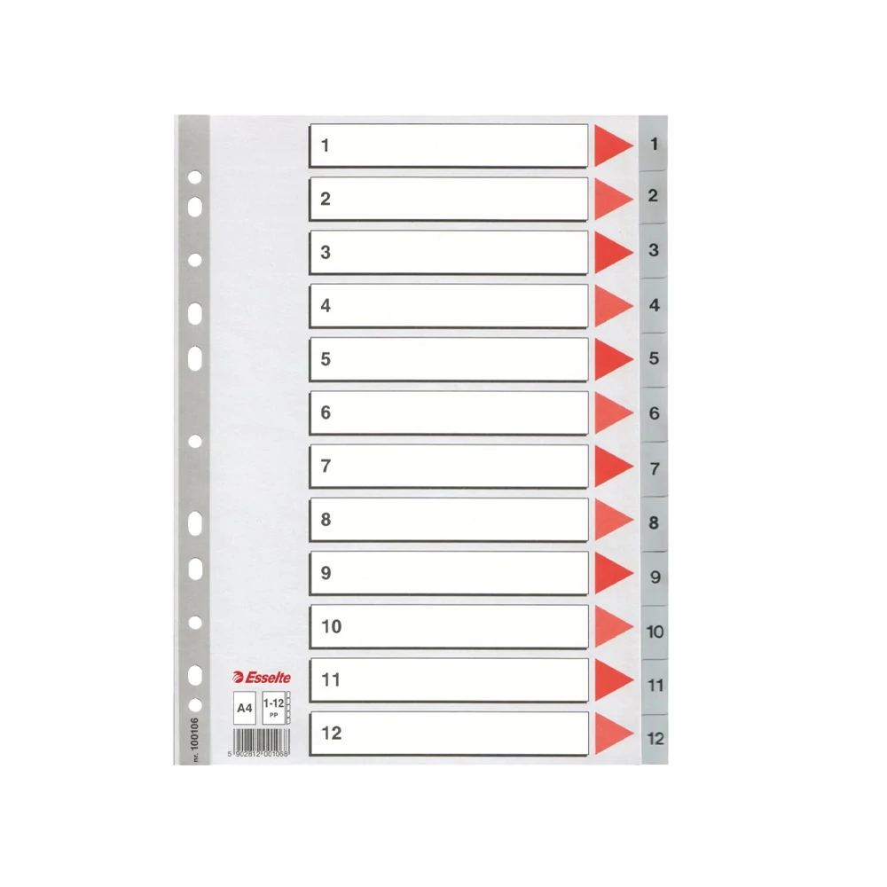 Regiszter műanyag A4, 1-12 Esselte szürke
