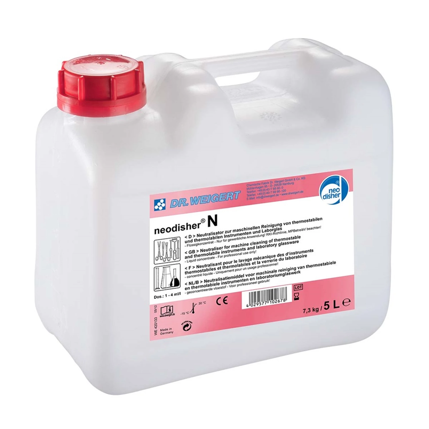 Folyékony, savas kémhatású gépi mosogatószer tisztításra és semlegesítésre, speciális mosogatógépekhez. Tulajdonságok: A neodisher N alkalmas lúgos tisztítószer-maradványok semlegesítésére, valamint mész, húgykő és más, savban oldódó szennyeződések és lerakódások eltávolítására. Nem tartalmaz tenzideket, könnyen leöblíthető, kémiai-termikus eljárásokban használva baktericid hatású. Mindenfajta üveg, kerámia, nemesacél, valamint saválló műanyagok és gumik tisztítására alkalmas, ezeket az anyagokat Adagolás: Speciális mosogatógépekben (azok adagolórendszerén keresztül): Lúgok semlegesítésére: 1 - 2 ml/, a lúgos mosási folyamat utáni első öblízővízhez adagolva. Savas előmosáshoz/ mosogatáshoz: 2 - 4 ml/l, 40 - 60 °C-on. A neodisher N oldatait alaposan öblítsük le. Savas előmosáshoz/ mosogatáshoz: 2 - 4 ml/l, 40 - 60 °C-on. A neodisher N oldatait alaposan öblítsük le. Katalóguskód:
