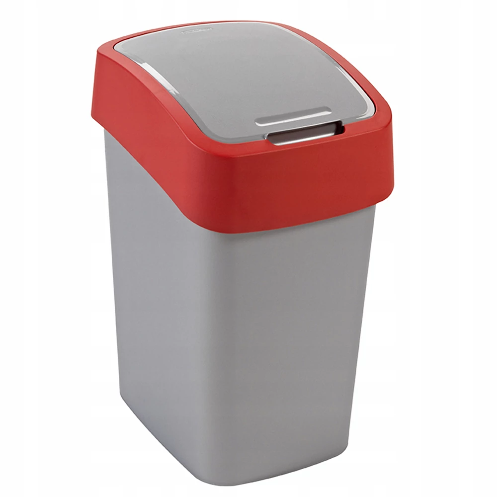 Szemeteskuka billenő fedéllel műanyag 10 literes Curver ezüst/piros