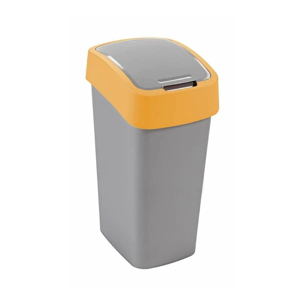 Szemeteskuka billenő fedéllel műanyag 45 literes Curver ezüst-sárga