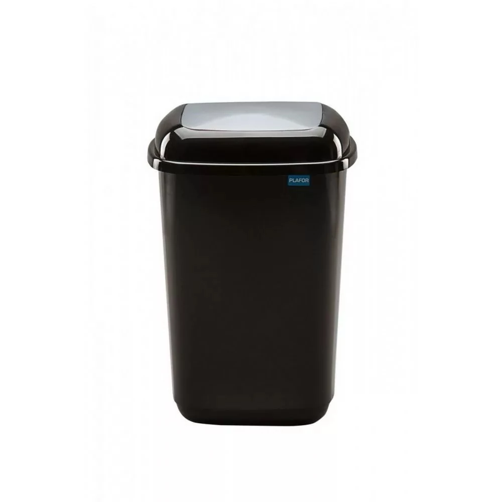 Szemeteskuka rugós billenő fedéllel műanyag 45 literes Plafor Quatro fekete-ezüst