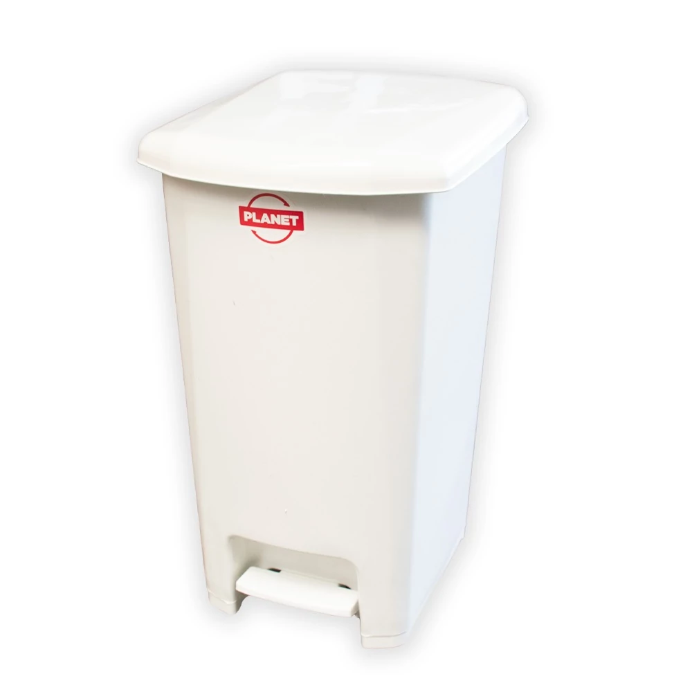 Pedálos szemetes kuka, műanyag, kivehető kosárral, újrahasznosított műanyag alapanyagból készül.