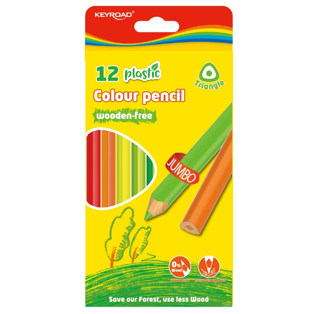 Színes ceruza készlet 4 mm famentes háromszögletű Keyroad Jumbo 12 klf. szín
