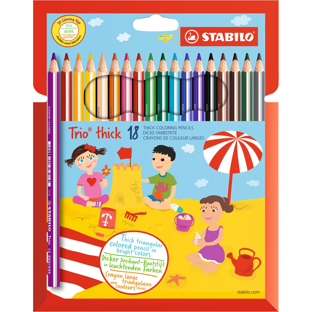 Színes ceruza készlet, háromszögletű vastag, STABILO TRIO 203/18 18 klf. szín