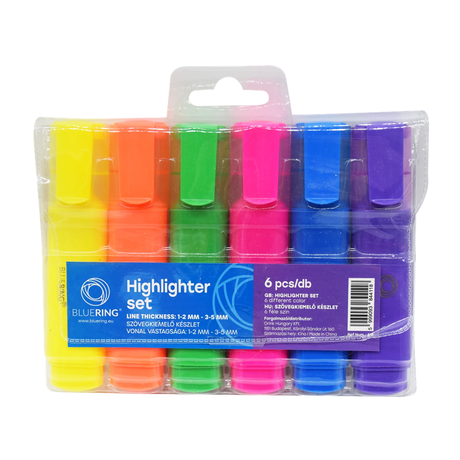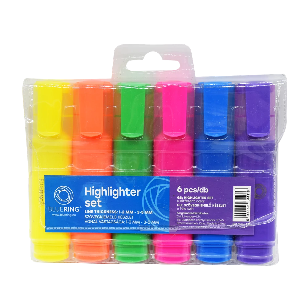 Szövegkiemelő lapos testű készlet, Bluering® 6 klf. szín