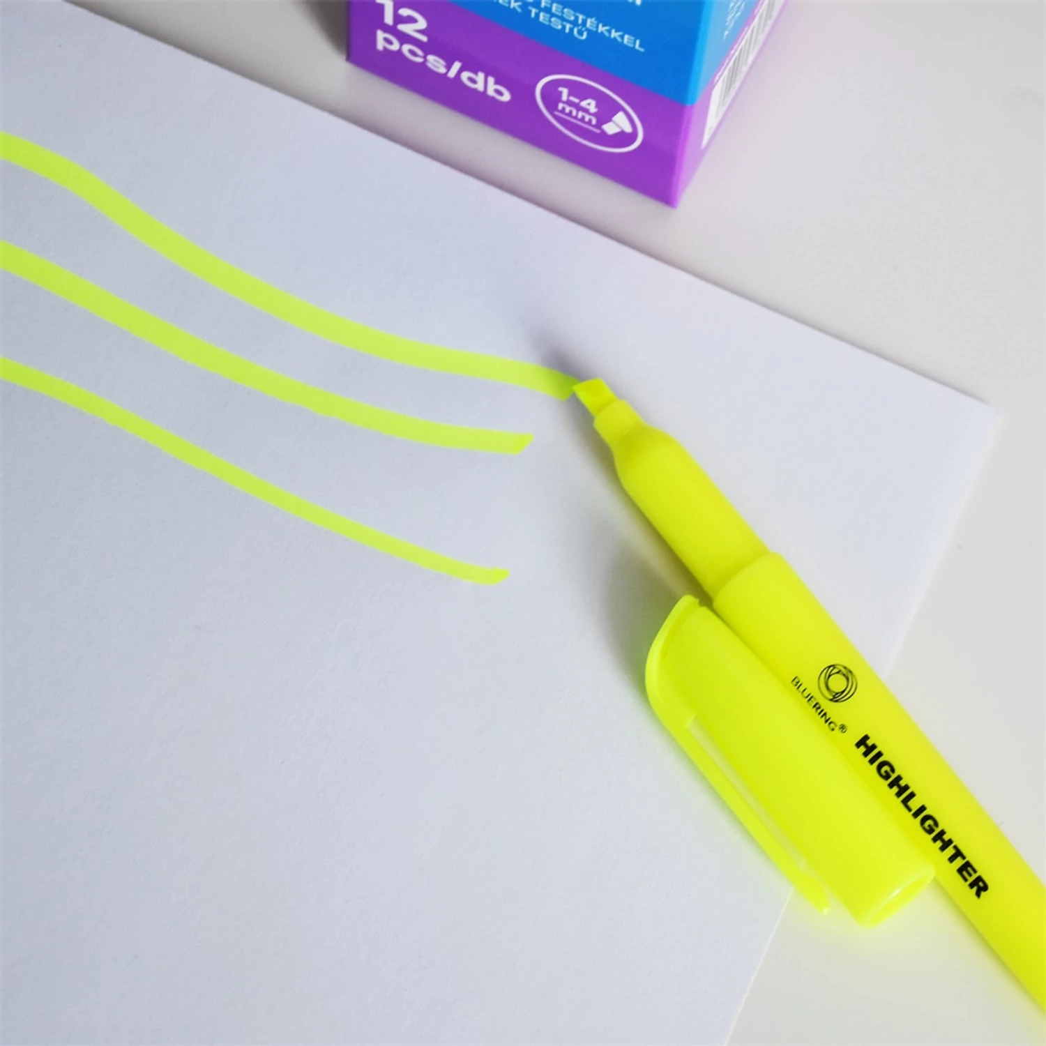 Speciális fluoreszkáló festékkel töltött kerek testű szövegkiemelő. A kiemelt szöveg fénymásolható,faxolható. Klippel ellátott kupak, mely légmentesen zár. Festék színével megegyező kupak és testszín. Vágott csúccsal, 4 féle élénk színben. Vonalvastagság: 1-2 mm (íróhegy élével), 3-4 mm (íróhegy lapjával). Katalóguskód: 12162 Hiteles tájékoztatás: Elkötelezettek vagyunk termékeink biztonságának garantálásáért, nyomon követjük a termékbiztonsággal kapcsolatos valamennyi európai uniós és hazai szabályozást és biztosítjuk termékeink azoknak történő megfelelését. Az EU 2023/988-as számú Általános Termékbiztonsági Rendeletét (GPSR) is alkalmazzuk, így ha a termékeink biztonságát illetően fogyasztóként kérdése, észrevétele van, vagy esetleg balesetről van tudomása, kérjük, írja meg nekünk. GPSR: Orink Hungary Kft.; H-1151 Budapest, Károlyi Sándor út 160.; info@orinkhungary.hu; https://orink.hu/
