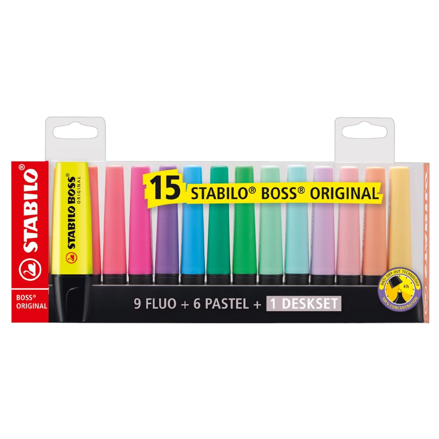 Szövegkiemelő készlet 2-5mm, vágott hegyű STABILO Boss original, 15 klf. szín