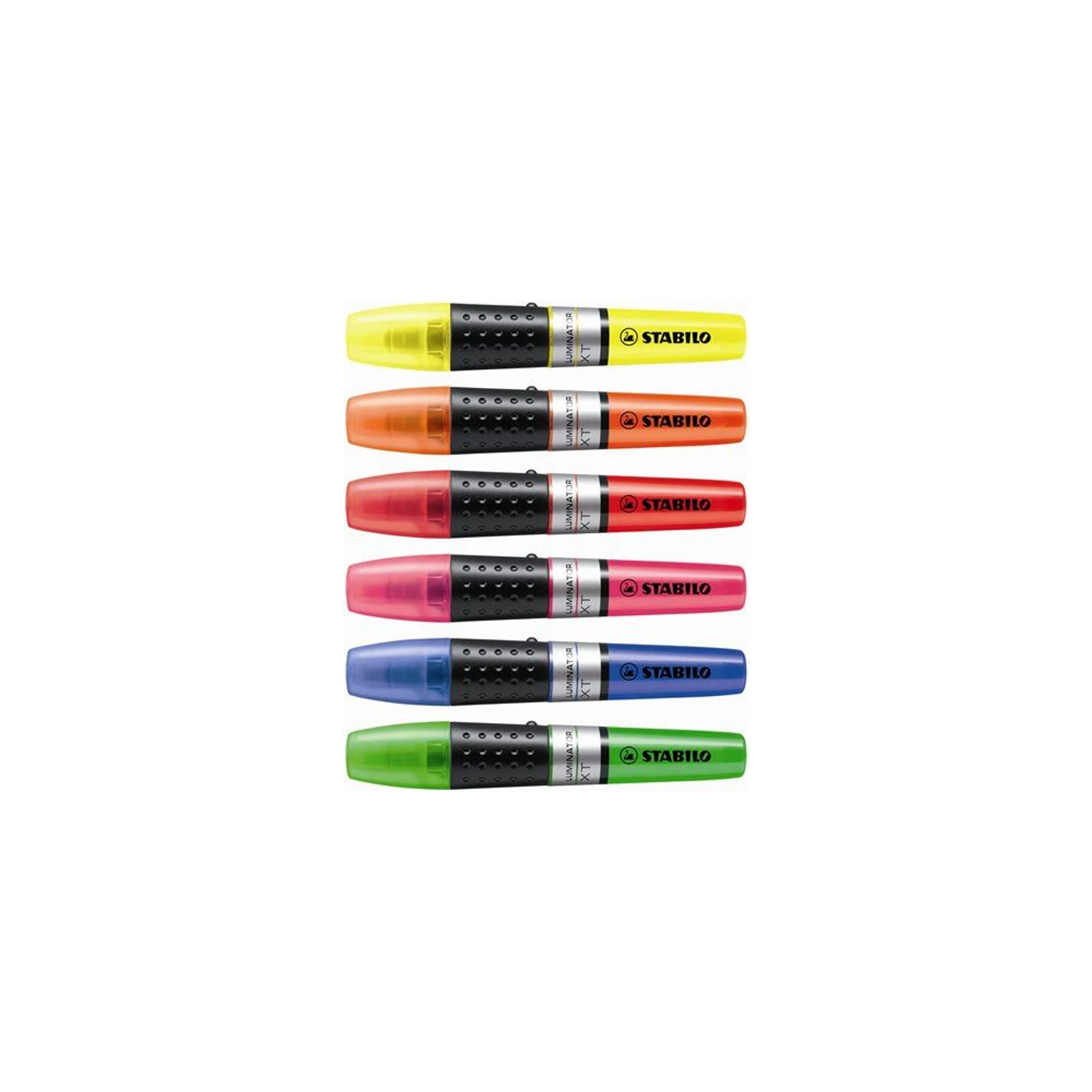 A STABILO LUMINATOR szövegkiemelő díjnyertes megjelenése megkülönbözteti minden más szövegkiemelőtől. A tintaszint jelző lehetővé teszi a tintamennyiség folyamatos nyomon követését. A hagyományos szövegkiemelőkénél nagyobb tintatartály az akár 500 m hosszú, zavartalan kiemelésért. A STABILO kiszáradás elleni technológiája akár 4 óra kiszáradás elleni védelmet biztosít. 2 vonalvastagság: 2 mm és 5 mm. Katalóguskód: 42412 Hiteles tájékoztatás: Elkötelezettek vagyunk termékeink biztonságának garantálásáért, nyomon követjük a termékbiztonsággal kapcsolatos valamennyi európai uniós és hazai szabályozást és biztosítjuk termékeink azoknak történő megfelelését. Az EU 2023/988-as számú Általános Termékbiztonsági Rendeletét (GPSR) is alkalmazzuk, így ha a termékeink biztonságát illetően fogyasztóként kérdése, észrevétele van, vagy esetleg balesetről van tudomása, kérjük, írja meg nekünk. GPSR: Stabilo International GmbH Schwanweg 1 D-90562 Heroldsberg info@stabilo.com https://www.stabilo.com