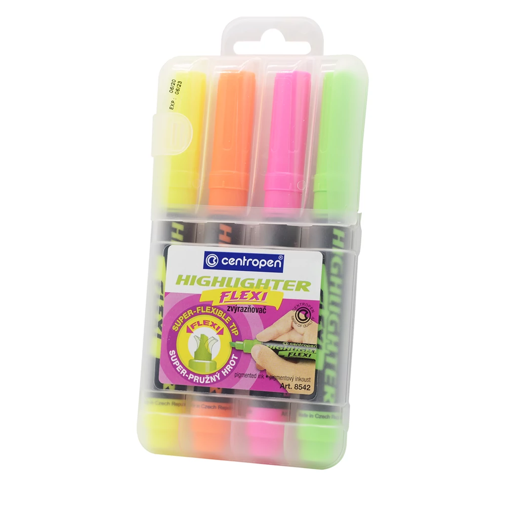 Szövegkiemelő készlet, 1-5mm, rugalmas vágott hegyű, Centropen 8542, 4 klf. szín