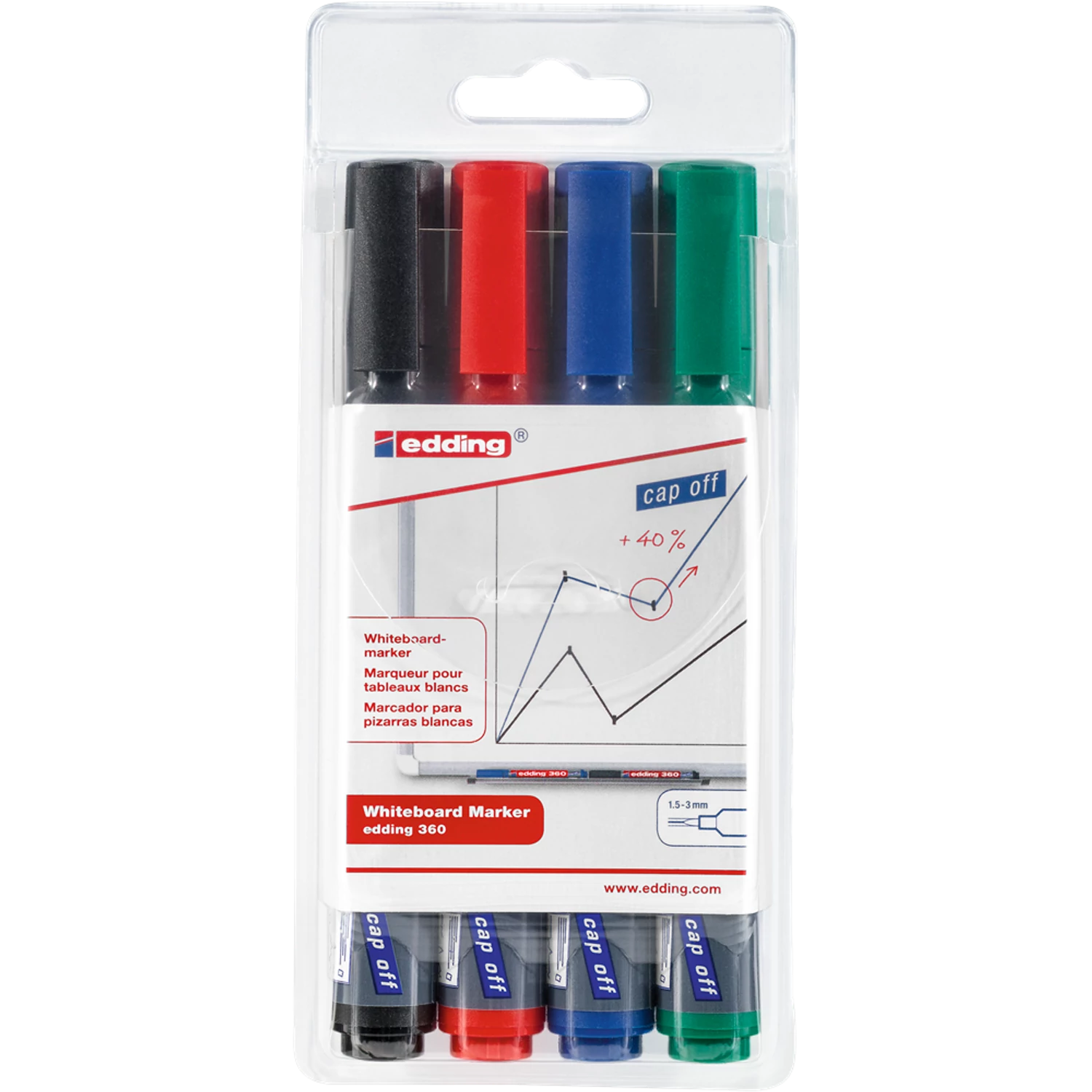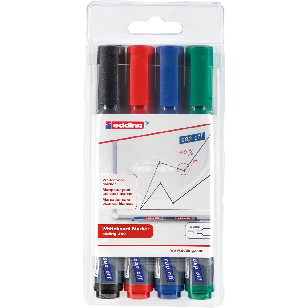 Táblamarker készlet, 1,5-3mm, kerek Edding 360, 4 klf. szín