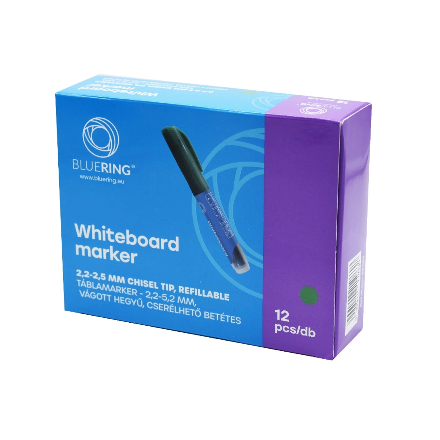 Táblamarker 2,2-5,2mm, vágott hegyű, cserélhető betétes, Bluering zöld