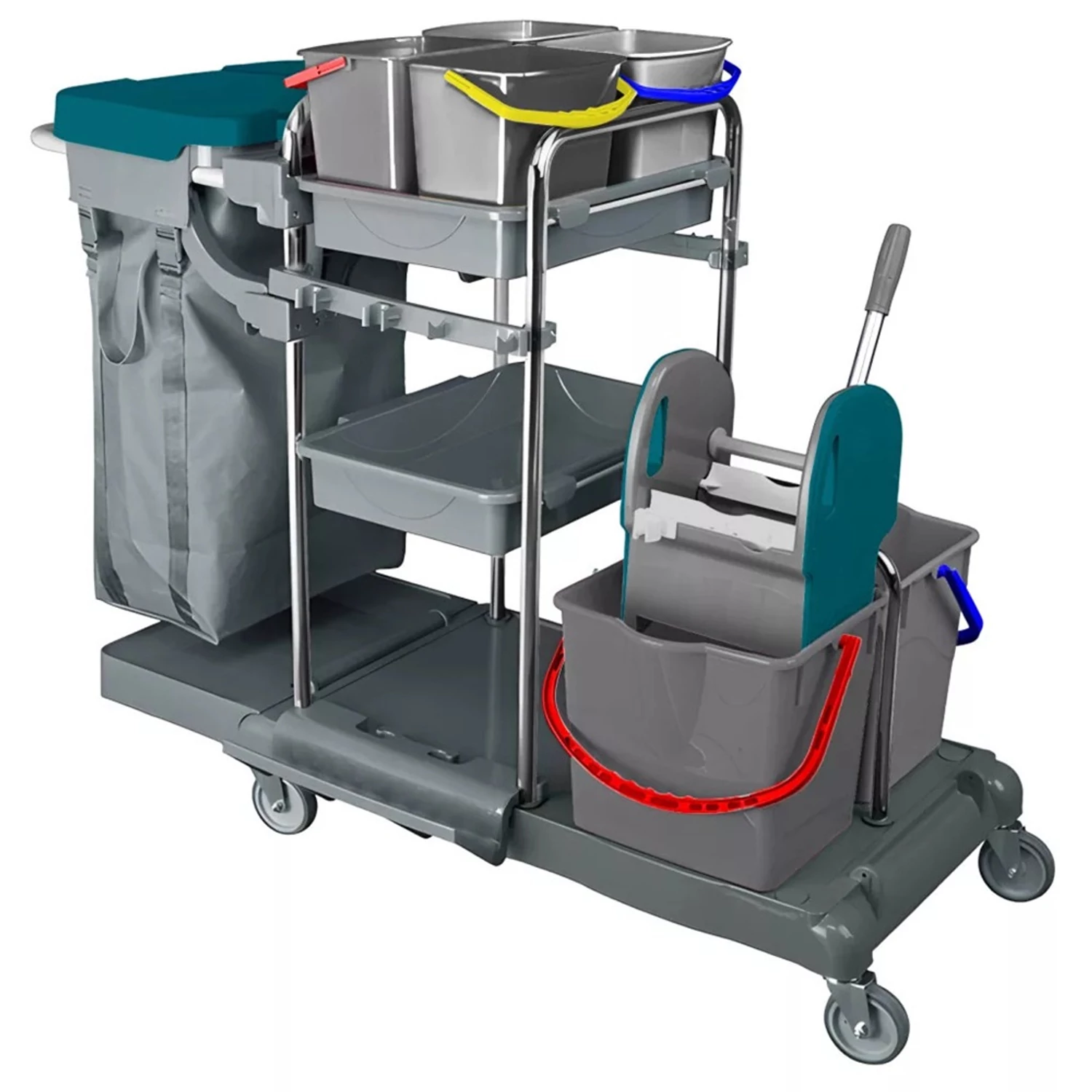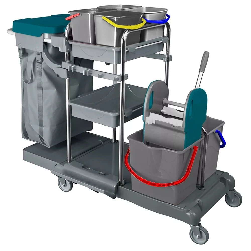 Takarítókocsi króm vázas 2 x 18 liter és 4 x 5 literes vödörrel KA405FK