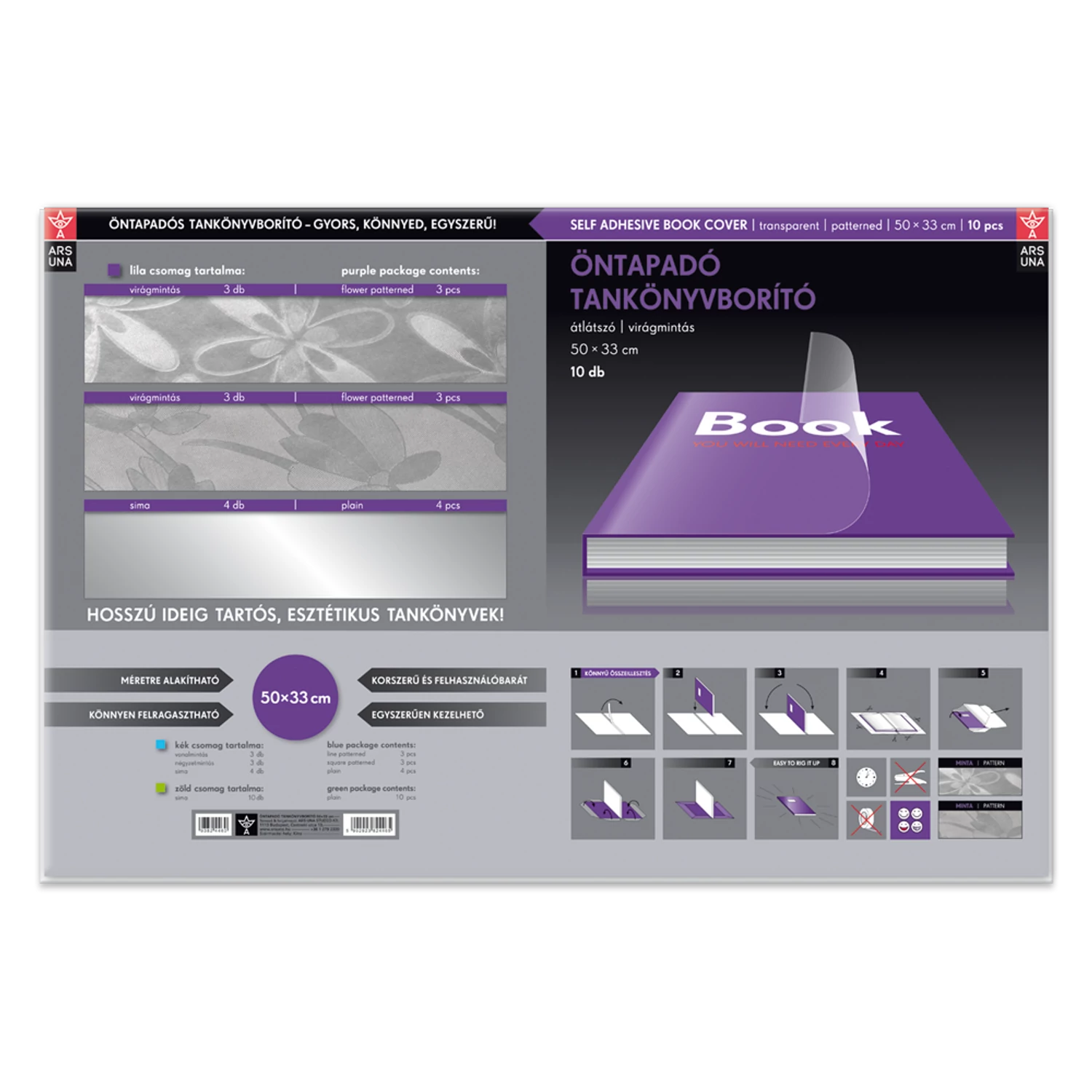 Tankönyvborító öntapadó, 50x33cm, 10 ív/csomag, Ars Una, virágmintás
