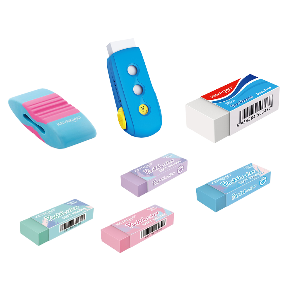 Nem tudtunk kiemelten egyet választani, mindet imádjuk, hisz a Keyroad különböző formájú és funkciójú radírokat kínál. Mindegyik tartós, ergonomikus kialakítású, így könnyebb a használata. Kapható hagyományos, PVC mentes, védőtokos, rugalmas, pasztellszínű, vegyes mintázatú és hegyezővel kombinált is.
