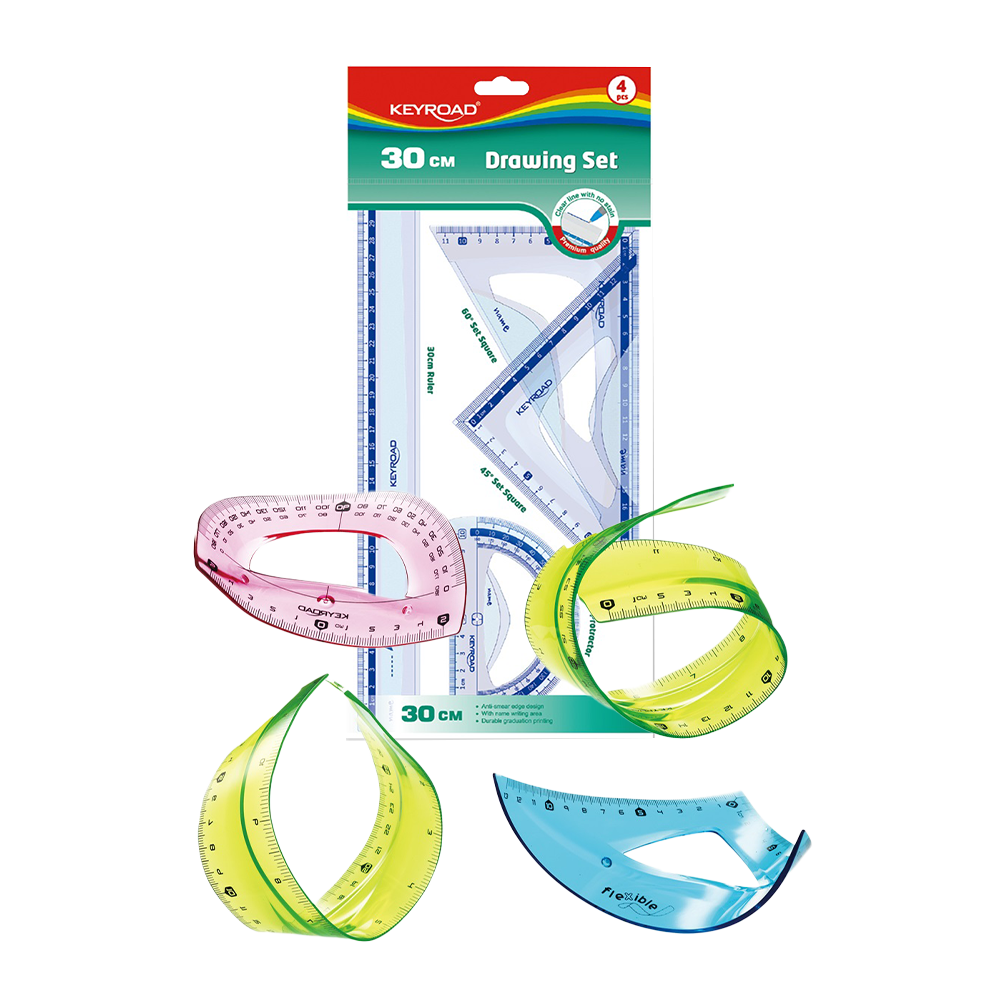 A pontosság híveinek ez a készlet kötelező darab! Megtalálható benne egy 30 cm-es, egy derékszögű és egy 60 fokos flexibilis vonalzó, illetve egy flexbilis szögmérő is. Az eszközök átlátszók, rugalmasak és biztonságosak, hála törésállóságuknak. Kínálatunkban vegyes színekben (rózsaszín, zöld kék) találod meg, azonban szín nem választható.