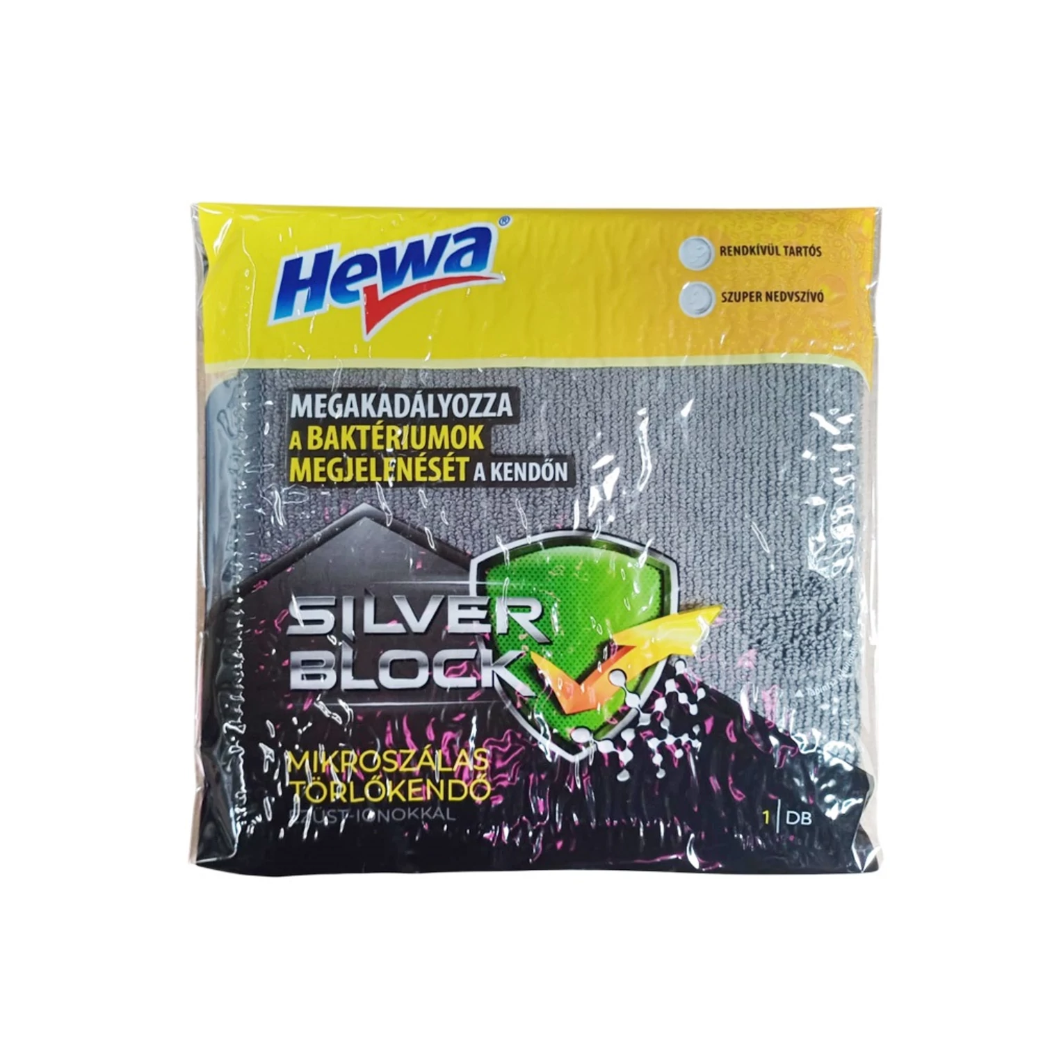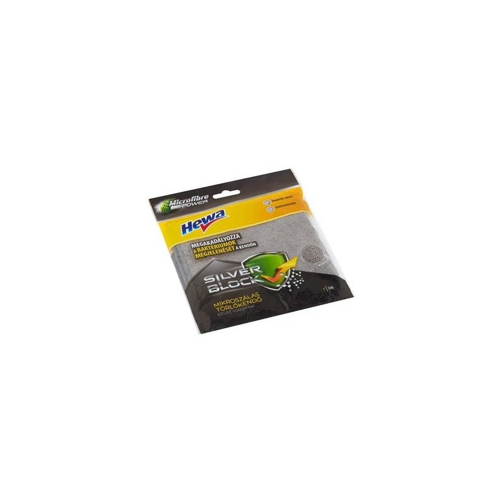 Hewa Silver Block mikroszálas törlőkendő ezüst-ionokkal. A termék biocid anyagot, ezüst nitrátot tartalmaz, így megakadályozza azoknak a baktériumoknak megjelenését, amelyek kellemetlen szagot kölcsönöznének a kendőnek.- Ultravékony mikroszálainak köszönhetően hatékonyan használható bármilyen felülethez tisztítószer hozzáadása nélkül.- Nem hagy foltokat illetve szálakat a tisztítás során. Katalóguskód: 60462