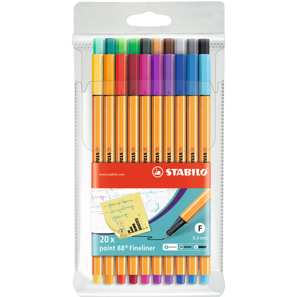 Rostirón, tűfilc készlet, 0,4mm, 8820 Stabilo Point 88, 20 klf. szín