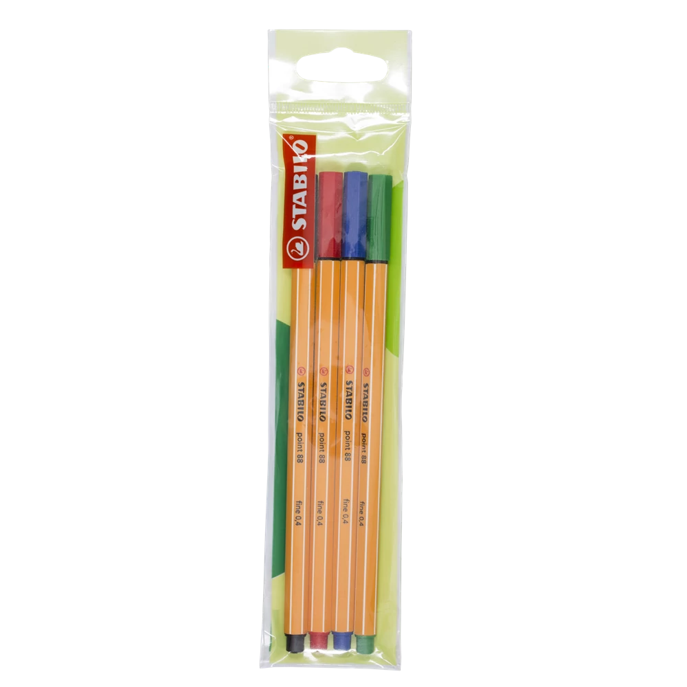 Rostirón, tűfilc készlet, 0,4mm, 32234 Stabilo Point 88, 4 klf. szín