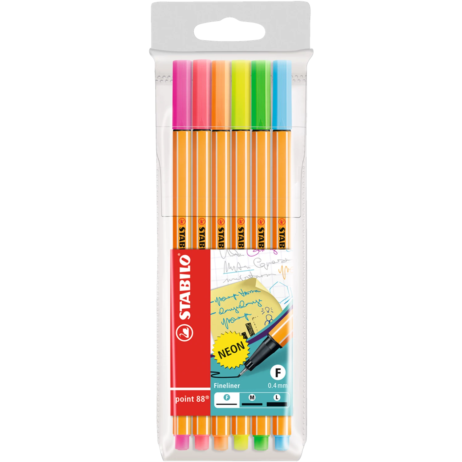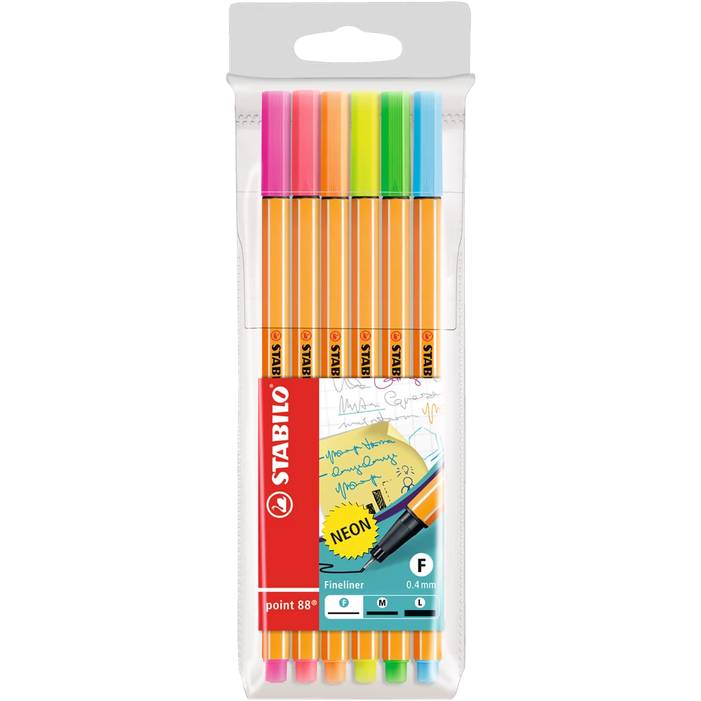 Rostirón, tűfilc készlet, 0,4mm, Stabilo Point 88, 6 klf. szín