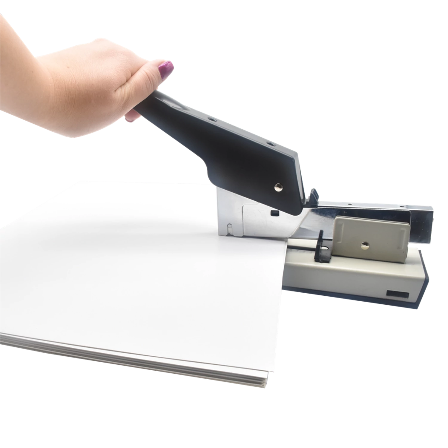 Nagy teljesítményű, karos, fém tűzőgép. Elöltöltős, állítható fűzési mélység 70mm-ig. Csúszásgátló talp biztosítja a stabil használatot. 23/6 -23/13, 23/14 tűzőkapcsokhoz. Lapkapacitás: 100 lap Katalóguskód: 13662