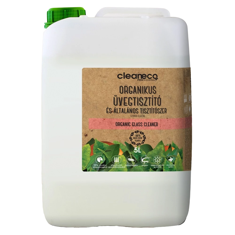 Üvegtisztító munkaoldat 5000 ml organikus Cleaneco termék alkalmazásakor ügyeljen a biztonságra! Használat előtt mindig olvassa el a címkét és a használati útmutatót!