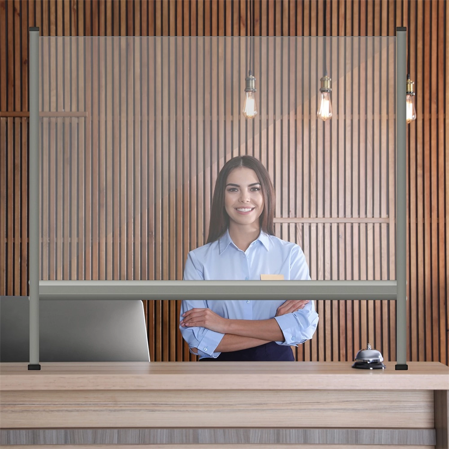 Pult és asztalosztó. Eloxált aluminium keret kereszt tartóval, mely garantálja a stabilitást. Hordozható, 20 cm kivágás az alján a tárgyak, dokumentumok átadásához. Átlátszó, könnyen tisztíható és fertőtleníthető. Teljes magasság: 92,7 cm. Egyszerű, gyors összeszerelés. Méret: 62,9 x 92,7 x 42 cm. Katalóguskód: 30827 Hiteles tájékoztatás: Elkötelezettek vagyunk termékeink biztonságának garantálásáért, nyomon követjük a termékbiztonsággal kapcsolatos valamennyi európai uniós és hazai szabályozást és biztosítjuk termékeink azoknak történő megfelelését. Az EU 2023/988-as számú Általános Termékbiztonsági Rendeletét (GPSR) is alkalmazzuk, így ha a termékeink biztonságát illetően fogyasztóként kérdése, észrevétele van, vagy esetleg balesetről van tudomása, kérjük, írja meg nekünk. GPSR: LEITZ ACCO Brands GmbH & Co KG