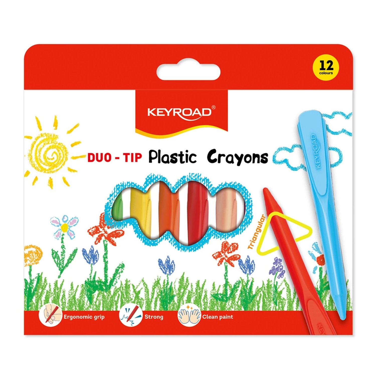 A Keyroad viaszkréta 12 darabos készlete a mindennapi rajzoláshoz és színezéshez optimalizált eszköz: vastag, 13 mm átmérőjű rudak, 100 mm hosszban – kényelmes fogás, stabil irányítás, és nagy felületeken is gyors a kitöltés. A sűrű, egyenletes viaszösszetétel nyomás nélkül is telten fog, a papírköpeny pedig tisztábban tartja a kezet és a krétát, így a munkafelület rendezett marad. A színek élénkek és jól rétegezhetők; a rudak nem porlanak, nem maszatolnak úgy, mint a táblakréták, ezért osztályteremben, otthon és kreatív műhelyben is kulturáltan használhatók.