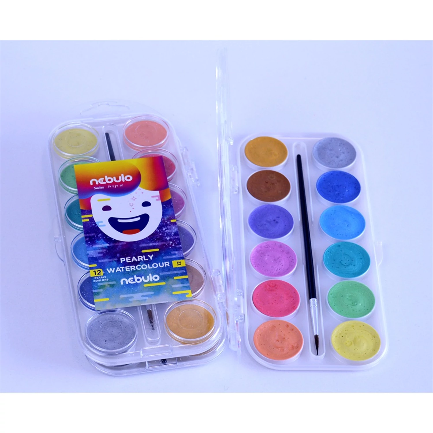 Vízfesték készlet, 12db-os, gyöngyház színű, 30mm festékgombokkal Nebulo