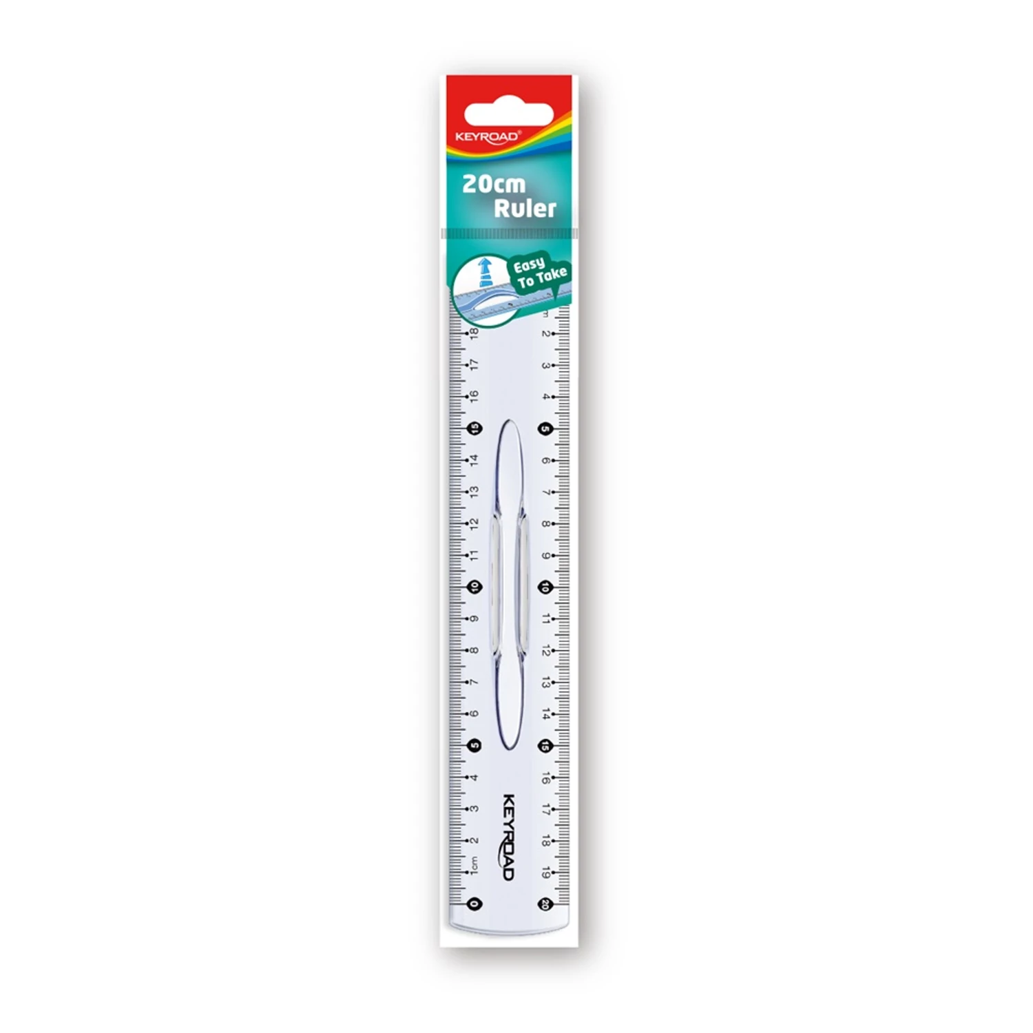 Vonalzó 20 cm, kétoldalt skálázott, fogantyús Keyroad