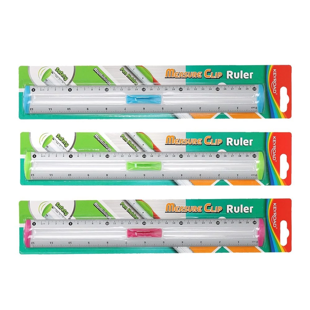 Vonalzó 30 cm, fém Keyroad Measure Clip vegyes színek