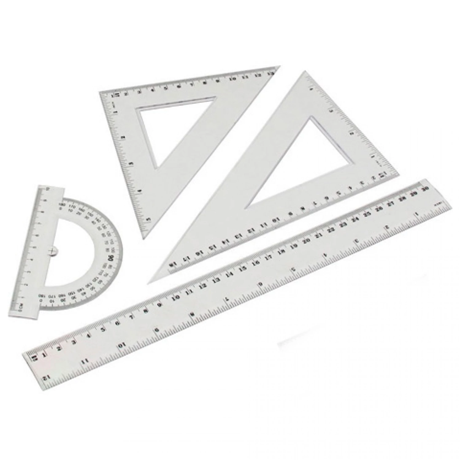 Vonalzókészlet, 30cm, vonalzó, szögmérő, 45° és 60° háromszög vonalzók 4 db/csom
