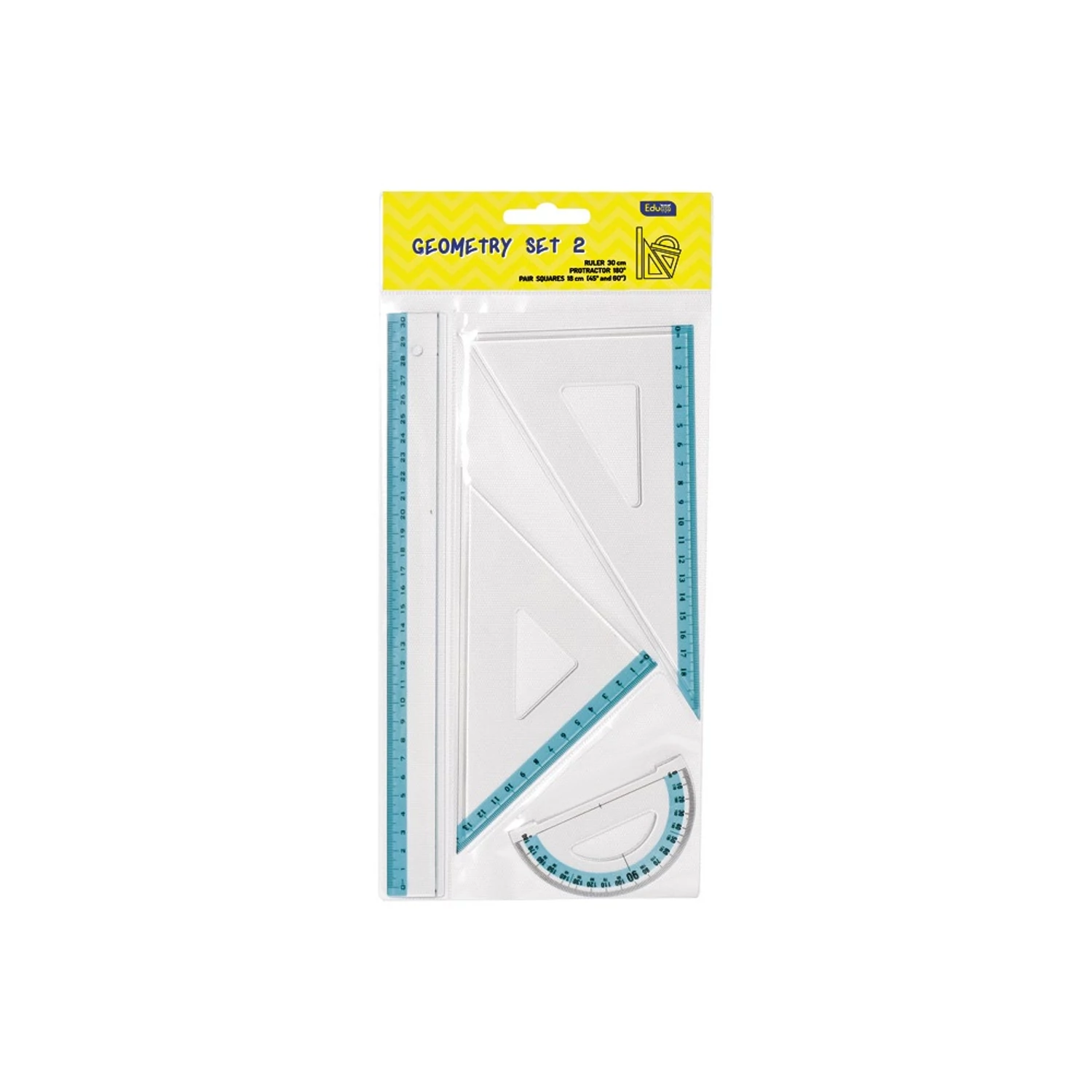 Vonalzókészlet, 30 cm egyenes vonalzó, szögmérő, 45° 13 cm és 60°, 18 cm háromszög vonalzó, 4 db/bliszter Educa