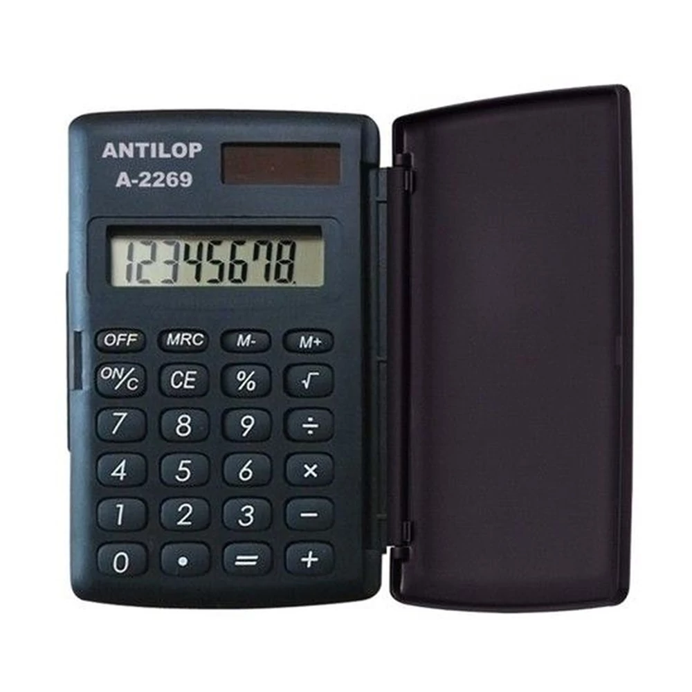 Zsebszámológép 8 digit fedeles napelemes gumírozott gombokkal Antilop A-2269